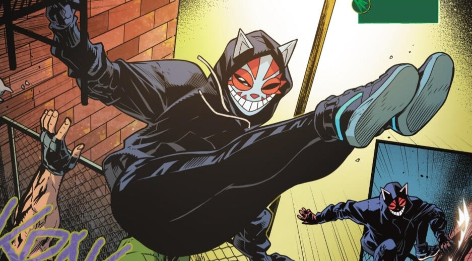 Lian Harper is the daughter of Arsenal and Cheshire. When she was Younger used to live with the teen titans and between other heroes. Her death was faked by Amanda Waller and she spent years being unwillingly teleported across time and space. She eventually ended up living on the streets of Gotham City, using the name Shoes. As a teenager she adopted the vigilante identity Cheshire Cat and was Catwoman's sidekick for a time, before finally reuniting with her father and her family Team Arrow.